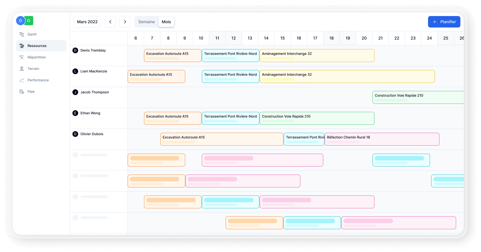 Gagnez du temps et augmentez votre rentabilité en planifiant, répartissant et suivant vos ressources sans effort